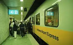 Frankfurt (Main) Airport regional station (German: Frankfurt (Main) Flughafen Regionalbahnhof) is an underground railway station at Frankfurt Airport in Frankfurt, Germany. It provides local S-Bahn and Regionalbahn services to the city and the Frankfurt/Rhine-Main Metropolitan Region. The station opened on 14 March 1972 together with a new passenger terminal (Terminal Mitte, now called Terminal 1). At the time it was only the second railway station serving an airport in Germany, and the first in then-West Germany (after Berlin Schönefeld Airport Station, then in East Germany).