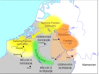Frankish War (441–446) was a multi-year military conflict in the provinces of Germania II and Belgica I during the reign of Emperor Valentinian. In addition to the Western Roman Empire, the two tribal associations of the Franks were involved: the Salian Franks and the Ripuarian Franks. The main players in this conflict were Flavius Aetius and Chlodio.[2]