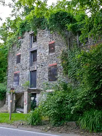 Franklintown Historic District is a national historic district in Baltimore, Maryland, United States. It is the result of a plan developed in 1832 by William H. Freeman (1790–1863), a local politician and entrepreneur, who intended to develop the area after noting the value of the recently-built Franklintown road. His plan involved the construction of the Franklintown inn and nearby Central Race Course to attract prominent visitors.[2] The central feature is an oval plan with radiating lots around a central wooded park. The district includes an old fieldstone grist mill set on the banks of Dead Run stream known as Franklin Mill, the innovative radiating oval plan, and the associated hotel and commercial area. Franklin Mill was converted into a residential house in the 1950s.[3] The key residential buildings are excellent examples of the "I"-house form and display steeply pitched cross gables found in vernacular rural buildings throughout much of Maryland.[4]
