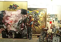 In a series of paintings from 2006, the subject is the African desert, which is encroached upon by civilization with its garbage, but due to its vastness remains untouched by nature (Untamed Land, 2006)