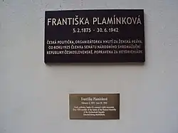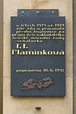 Plaque on the house in Prague where Plamínková lived and worked between 1914 and 1939
