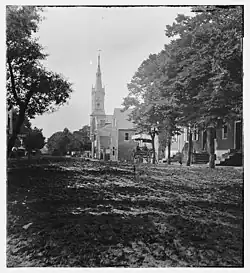 Fredericksburg, Virginia. View on Princess Anne Street showing Baptist church and 6th Corps hospital
