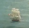 On the evening of 26 February Hydra and Moselle were three leagues west of the Cadiz lighthouse when they sighted the French squadron, comprising the 40-gun frigates Cornélie, Rhin, Hortense and Hermione, and Furet. Mundy began firing rockets and alarm guns to alert Collingwood, while sailing parallel to the French squadron. Mundy then sent Carden in Moselle to try to locate the British fleet. On the morning of 27 February Moselle reached Collingwood, who despatched three frigates to try to catch the French. In the meantime, Hydra had managed to isolate Furet from her companions, and after a two-hour chase, captured her. The French frigates did not come to their brig's aid, and after firing a pro forma broadside, Furet surrendered. Furet was armed with eighteen 9-pounder guns, and had a crew of 130 men under the command of lieutenant de vaisseau Demay. She was provisioned for a cruise of five months.[4] Under the rules of prize-money, Moselle shared in the proceeds of the capture of Furet.[5]