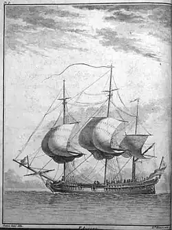 The expedition was to depart Le Havre and cruise off the Northern coast of France, sailing to various harbours — Calais, Dunkirk, Rotterdam, Brielle and Amsterdam — before returning to Boulogne and Le Havre.[5] A second journey was to be undertaken in 1768 to the South up to A Coruña.[6] The frequent calls were to allow recalibrating the chronometer often, entailing that the ship had to be specially chartered for the purpose and be small and maneuverable enough to enter all the ports; this precluded use of a regular merchantman, which would in any case have been slow and whose accommodations would have been ill-suited to the purpose. Rather than re-amenaging a merchantman Courtanvaux decided to commission Nicolas Ozanne to design a corvette-sized yacht.[7] Ozanne designed her as a pleasure craft, and the scientists involved in the expedition had quarters of an unusually high quality for the time.[3]