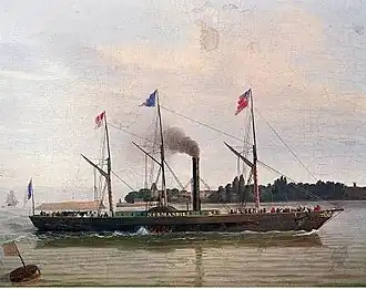 The Normandie built in 1835, was a French paddle steamer working in conjunction with her sister ship the Seine (1836) on the lower reaches of the Seine.[1] The route she serviced was between Le Havre and Rouen via Honfleur with secondary stops along the way. She gained fame by being a participant in the retour des cendres ("return of the ashes") of Napoleon to France.