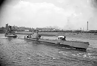 By 1946 Doris was at La Pallice, France.[1] The French Navy returned her to the Royal Navy on 18 November 1947.[1][2] She made stopovers at the submarine bases at Lorient and Brest, France, before her arrival in the United Kingdom.[1]