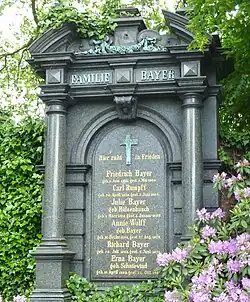 Friedrich Bayer changed the spelling of his surname from Beyer in his early twenties, due to the publicity gained by a fraudulent merchant from Leipzig bearing the same name.[2] Friedrich Beyer from Barmen feared that the bad reputation of his namesake could damage his business and consequently changed his surname to Bayer.[2]