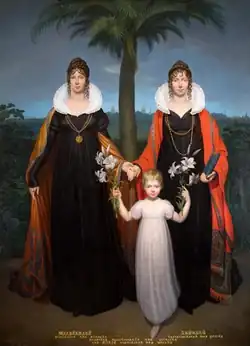 Group portrait with Wilhelmine of Prussia, later on Queen of the Netherlands and her sister Princess Augusta of Prussia with daughter Princess Marie Frederica of Hesse-Kassel by Bury