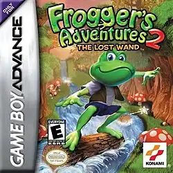 Frogger's Adventures 2: The Lost Wand[a] is a 2002 platform game developed and published by Konami for the Game Boy Advance. It follows an anthropomorphic frog named Frogger as he attempts to find the scattered pieces of a magic wand.