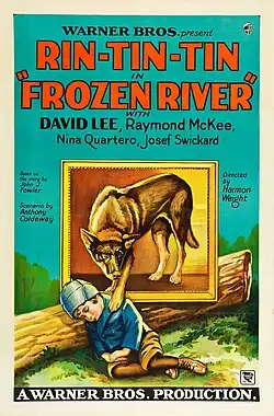 Frozen River is a lost 1929 sound part-talkie film directed by F. Harmon Weight and starring the canine star Rin Tin Tin and boy actor Davey Lee. In addition to sequences with audible dialogue or talking sequences, the film features a synchronized musical score and sound effects along with English intertitles. The soundtrack was recorded using the Vitaphone sound-on-disc system. Warner Bros. produced and distributed the film.[2]