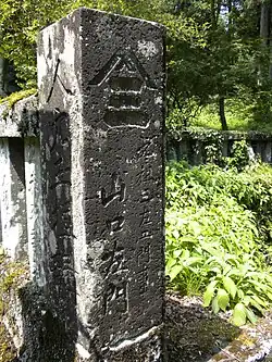 Yamasan" mark on a monument of the Fuji-kō (Ningenan Fuji-kō Site)