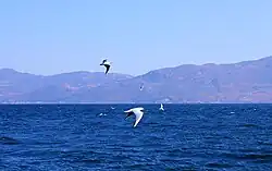 Together with other Yunnan lakes (Dian, Qilu, Yangzong, Xingyun, and Yilong), Fuxian is recognized as an ecoregion.[5] It is one of three major lakes in the province with a high number of endemic species, the others being Dian (Dianchi) and Erhai.[6] There are 24 native fish species and subspecies in Fuxian Lake, including 11 endemics.[6] The situation for most of these is precarious: besides being threatened by the introduction of 26 species of exotic fish, they have also fallen victim to habitat degradation, water pollution, and overfishing.[6][7] The endemic fish are all cyprinids or stone loaches.[6]