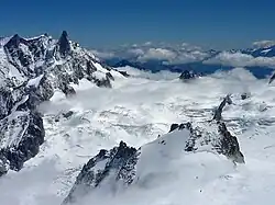 The Géant Glacier (French: Glacier du Géant) is a large glacier on the French side of the Mont Blanc massif in the Alps. It is the main supplier of ice (via the Vallée Blanche) to the Mer de Glace which flows down towards Montenvers. It gets its name from the nearby Dent du Géant.