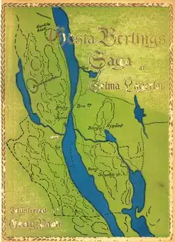 The scene is laid on the shores of Lake Fryken (Lake Löven in the story) in Värmland.[1] Using wolves, snow, supernatural elements and eccentric upper-class characters to project an exotic image of 1820s Värmland, the novel can be compared to magic realism. The title is meant to give associations to the Icelandic sagas. The first sentence, "Finally, the vicar was in the pulpit," is one of the most famous in Swedish literature.