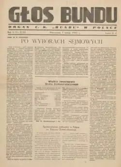 Głos Bundu (Polish language for 'Voice of the Bund') was a Polish-language monthly publication issued from Warsaw, Poland between August 1946 and May 1948.[1][2][3][4] Głos Bundu was an organ of the Central Committee of the General Jewish Labour Bund in Poland.[2][3] In total seventeen issues of Głos Bundu were published.[2]