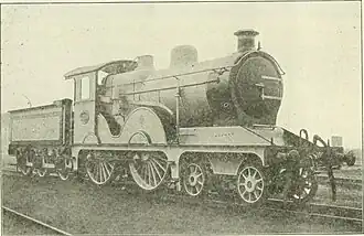 Between 1905 and 1908 sixty were rebuilt as 4-4-0 tender engines with the same new Belpaire boilers. The first ten re-used the bogies from Class G16[5] 4-4-0s, while the other re-used the rear bogie from withdrawn Class E10[6] 0-4-4T locomotives.[7] Superheaters began to be fitted from 1913,[8] and all those still in service in 1926 had been so fitted.