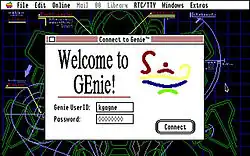 GEnie (General Electric Network for Information Exchange) was an online service created by a General Electric business, GEIS (now GXS), that ran from 1985 through the end of 1999. In 1994, GEnie claimed around 350,000 users.[1] Peak simultaneous usage was around 10,000 users. It was one of the pioneering services in the field, though eventually replaced by the World Wide Web and graphics-based services, most notably AOL.[2]