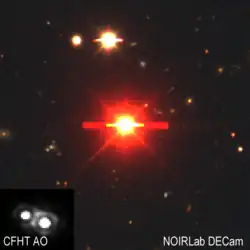 ![]() DECam image and CFHT adaptive optics image (lower left) of the resolved outer companion | |