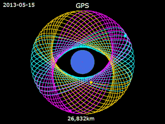 The GPS satellites circle the Earth at an altitude of about 20,000 km (12,427 miles) and complete two full orbits every day.[2]