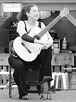 1st Grand Prize of the Michele Pittaluga International Classical Guitar Competition (first French woman to win it), 2nd Prize of the prestigious Guitar Foundation of America, she was finalist at the Concert Artists Guild Competition in New York, winner of the Beracasa, Meyer, Contestabile Foundations. She then began an international career: Festival de Radio France in Montpellier, Flâneries musicales de Reims, Festival de Torroella de Montgrí, Salle Cortot, Théâtre de la Villette, Cité de la Musique, Purcell Room in London. Tours will follow in India, Africa, Southeast Asia, United States, Mexico, Canada and Germany. She has given concerts in about thirty countries. She performs in solo recital as well as in duo within the Astor duo[3] (from 1996 to 2005), as a chamber musician with clarinet (Florent Héau, Antonio Salguero), violin (Marina Chiche), flute (Alfonso Rubio),[4] bandoneon (Jérémy Vannereau), string quartet (Cuarteto Arcadia),[5] with the Chœur Nicolas de Grigny, the contemporary music ensemble "Zahir" and as a soloist with the Turin Philharmonic Orchestra,[6] the French Republican Guard Band and the Berkeley Symphony Orchestra.