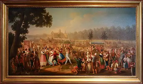 His first works were mostly ecclesiastical commissions for religious paintings throughout Campania. He was almost forty before he added genre painting to his repertoire. His first work in that style depicted a banquet held by the legionnaires of Joachim Murat, commissioned by the Palace of Caserta.[3] He eventually specialized in depicting local costumes and customs.