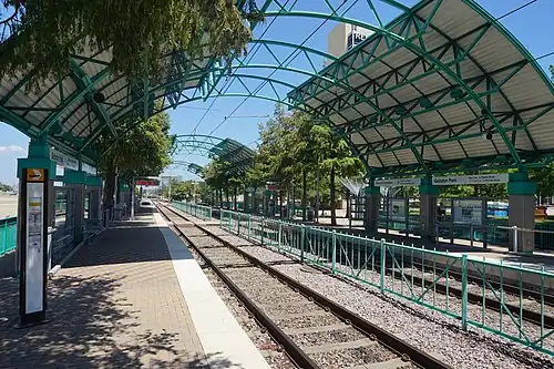 Galatyn Park station is a DART light rail station in Richardson, Texas. The station serves the Red Line and, during peak periods, the Orange Line.[2] It is located on a frontage road of North Central Expressway (US 75) and is named for the adjacent Galatyn Park Urban Center development.
