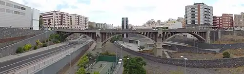 The official opening was at 5 p.m. on 19 October 1928, as part of the visit of Prime Minister Miguel Primo de Rivera to Tenerife. When it opened, it was the third bridge to cross the Santos ravine.[2] Its construction enabled the creation of the Los Molinos and La Salle neighbourhoods.[3]
