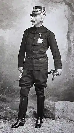 Galliffet or gallifet (Russian: галифе, romanized: galife) were a style of trousers worn as part of the military uniform of (for example) the Soviet Army. They were similar to riding breeches, but adapted to fit in jackboots. Russian dictionaries define "galife" as pants fitting the knees and below, to easily fit the sapogi (сапоги, Russian jackboots), and expanding from above the knees.[1]