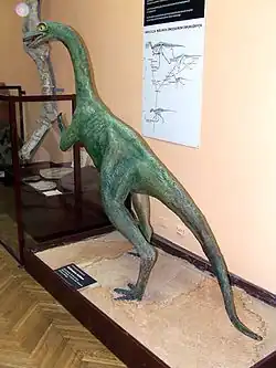 Gallimimus was formerly depicted without feathers, like this model in MEPAS.