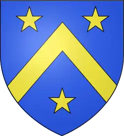 Coat of Arms: azure, in echelon, accompanied by three stars, all in gold. Crest: head and neck of a black horse au naturel.[12]