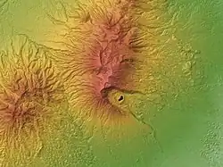 Mount Galunggung (Indonesian: Gunung Galunggung, formerly spelled Galoen-gong, Sundanese: ᮌᮥᮔᮥᮀ ᮍᮜᮥᮀᮍᮥᮀ) is an active stratovolcano in West Java, Indonesia, around 80 km (50 mi) southeast of the West Java provincial capital, Bandung (or around 20 km (12 mi) to the northwest of the West Java town of Tasikmalaya). Mount Galunggung is part of the Sunda Arc extending through Sumatra, Java and the Lesser Sunda Islands, which has resulted from the subduction of the Australian Plate beneath the Eurasian Plate.