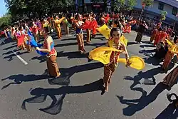 Gambyong (Javanese: ꦒꦩ꧀ꦧꦾꦺꦴꦁ) is a traditional Javanese dance originating from Surakarta, Central Java, Indonesia. It has existed since ancient times, and began to be displayed at the Mangkunegaran Palace in the era of 1916 to 1944. Gambyong became famous for its smooth and graceful dance moves that amazed the audience who watch them.[1][2]