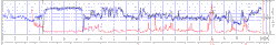 Example gamma ray log. Blue and black lines indicate the measured gamma rays. Sand section of interest is located at bottom of log where the log moves to the left.