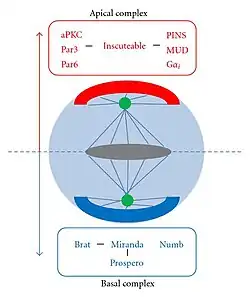 - ^ a b c Ohshiro, T., Yagami, T., Zhang, C., & Matsuzaki, F. (2000). Role of cortical tumour-suppressor proteins in asymmetric division of Drosophila neuroblast. Nature, 408(6812), 593-596.