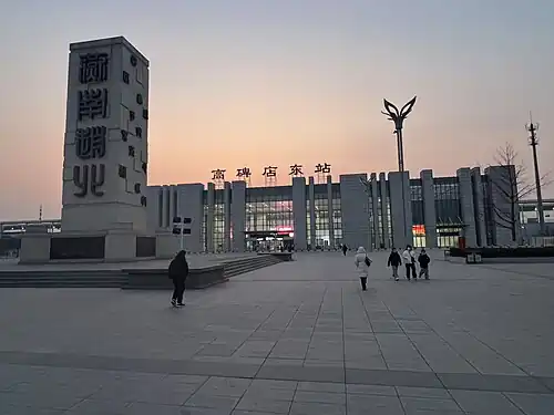 Gaobeidian East railway station (simplified Chinese: 高碑店东站; traditional Chinese: 高碑店東站; pinyin: Gāobēidiàndōng Zhàn) is a railway station on the Beijing–Shijiazhuang high-speed railway located in Gaobeidian, Hebei. It opened with the railway on 26 December 2012.[1]