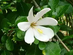 Gardenia cornuta, commonly known as Tonga gardenia, Natal gardenia or horned gardenia, is a species of flowering plant in the family Rubiaceae.[2][3] It is native to southern Africa.[4]