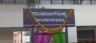 Garudacharpalya is an elevated metro station on the East-West corridor of the Purple Line of Namma Metro in Bengaluru, India. Around this station holds the Brigade Metropolis followed by some locations like Godrej United, Decathlon Whitefield, Airbus Group India Pvt. Ltd., IDP Education Pvt. Ltd. and many more.[1][2][3]
