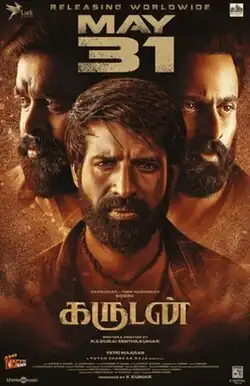 Garudan (transl.Brahminy kite)[2] is a 2024 Indian Tamil-language neo-noir action drama film written and directed by R. S. Durai Senthilkumar and jointly produced by Vetrimaaran and K. Kumar under Grass Root Film Company and Lark Studios. The film stars Soori, M. Sasikumar and Unni Mukundan in the leading roles, alongside Roshini Haripriyan, Sshivada, Revathi Sharma, Samuthirakani, Vadivukkarasi, R. V. Udayakumar and Mime Gopi in supporting roles. It follows Sokkan, a trusted confidante of two childhood friends Aadhi and Karuna, whose loyalty is changed by a dynamic between betrayal and survival.