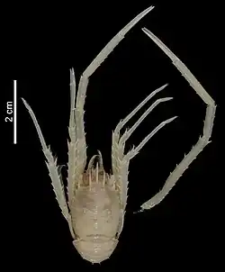 - ^ a b c Machordom, Annie; Ahyong, Shane T.; Andreakis, Nikos; Baba, Keiji; Buckley, David; García-Jiménez, Ricardo; McCallum, Anna W.; Rodríguez-Flores, Paula C. & Macpherson, Enrique (2022). "Deconstructing the crustacean squat lobster genus Munida to reconstruct the evolutionary history and systematics of the family Munididae (Decapoda, Anomura, Galatheoidea)". Invertebrate Systematics. 36 (10): 926–970. doi:10.1071/IS22013. hdl:10261/280688. S2CID 252812564.