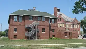 Gas City High School, also known as the East Ward School, is a historic school building located at Gas City, Grant County, Indiana, United States. It was built in 1894, and is a two-story, square, Romanesque Revival style brick and stone building. A two-story Prairie School inspired addition was completed in 1923. The two buildings are connected by a two-story "bridge".[2]: 5