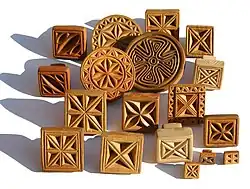 One popular variety of it is koritz (khoriz), which has a filling that consists of flour, butter and sugar. Gata can also include other fillings alongside khoritz, including nuts, (most commonly walnuts, while peanuts can also be used), dried fruits,[6] lemons,[7] or mulberries.[8][9][10] Some variations include placing a coin inside the dough before the gata is baked, and it is said that whoever receives the piece with the coin is to be blessed with good fortune. Gata from the villages of Garni and Geghard are decorated (before baking), round, and generally about a foot in diameter. Around the southern edge of Lake Sevan, in the town of Tsovinar, gata is denser and sweeter, and baked without koritz in a triangular shape without decoration.