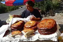 Gata (Armenian: գաթա) is an Armenian pastry or sweet bread.[1][2][3][4] There are many variations of gata in Armenia. Specific towns or regions have their own versions. Gata is made in a variety of shapes, sizes and may be decorated or left unadorned. In the past, gata was baked in a tonir, but it is now baked in an oven. The bread is traditionally eaten at the feast of Candlemas, but is eaten during other festivities too or simply eaten with a cup of tea or coffee.[5]