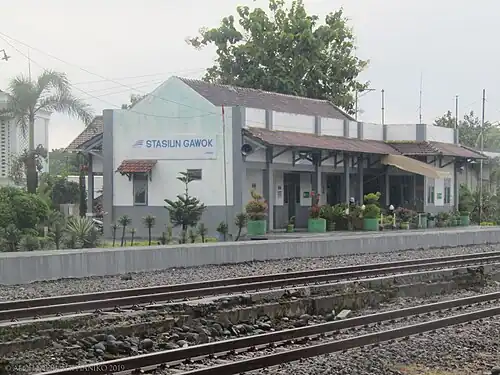 Gawok Station (GW) is a class III railway station located in Luwang, Gatak, Sukoharjo Regency; at an altitude of +118 meters, including in the Operational Area VI Yogyakarta. The station is not far from Gawok traditional market and Trangsan rattan industrial center.[3]