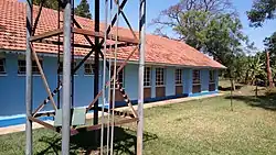 "Hutch" as usually referred to by the students is located in the middle of the school. It is named after Sir Joseph and Lena Hutchinson who were staff of Namulonge Cotton Research Station that was located a few kilometers from the school. The Hutchinsons worked tirelessly with Pamela Goode, a teacher at the school then, to establish the school farm in 1954. With this establishment, the school started the farm diet scheme in 1955.[3] Hutchinson is the second largest house after Rhoda Nsibambi. Today, members of this house are called "Hutchites" and their theme colour is Purple.