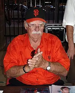 Perry made his major league debut with the Giants on April 14, 1962, against the Cincinnati Reds. In the game, he allowed four earned runs on five hits in 2+23 innings, picking up a no-decision.[17] He appeared in 13 games (seven starts) for the Giants, but had a 3–1 record and a 5.23 ERA and was sent back down to Tacoma in June,[15][18][19] where he went on to lead the PCL with a 2.44 ERA.[20] Perry was promoted back to the Giants in September,[21] but was not on the roster for the team's World Series appearance; it would be the only time in his career that he pitched for a pennant winner.