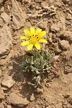 It is commonplace in the Succulent Karoo. The small seeds have fluffy tufts that spread in the wind. Young seedlings grow best on rough, barren ground where there is little competition from established plants. Ostriches in particular tend to feed on them.[5]