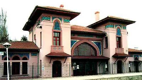 Gazi station is a historic station in Ankara, Turkey. Built in 1926 by the Turkish State Railways, the station building is notable for its Turkish Neoclassical architectural style, designed by Turkish architect Burhaneddin Tamcı.[1] Situated next to the Atatürk Forest Farm, the station was a stop on the Ankara suburban and Ankara-Polatlı Regional trains until 2016 when all train service (except high-speed) was suspended within Ankara. The station platforms are currently being rebuilt as part of TCDD's Başkentray project. The new station is expected to open on 12 April 2018.[2]