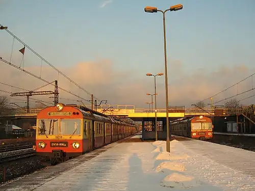 Gdańsk Stocznia railway station is a railway station serving the city of Gdańsk, in the Pomeranian Voivodeship, Poland. The station opened in 1867 and is located on the Gdańsk Śródmieście–Rumia railway. The train services are operated by SKM Tricity.