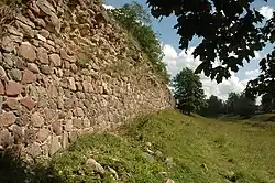 It was first mentioned in the beginning of the 14th century, as an outpost guarding the city of Pskov.[2] Between 1431 and 1434, Pskovians built a fortress there,[2] the remains of which can still be seen. It was attacked on numerous occasions by the Swedes and the Polish-Lithuanian Commonwealth[2] (e.g., during the Russo–Swedish War (1590–1595) and the Ingrian War), and captured by the Swedes in 1614, but was finally returned to Russia in 1617 according to the Treaty of Stolbovo.[13]