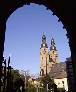 The Gedächtniskirche der Protestation (English: The Memorial Church of the Protestation) is a United Protestant church of both Lutheran and Reformed confessions in Speyer, Rhineland-Palatinate, Germany, that commemorates the Protestation at Speyer in defense of the evangelical faith, specifically Lutheranism. Built between 1893 and 1904, the church was constructed in memory of the protest that took place at the Diet of Speyer by the Protestant rulers of the Holy Roman Empire in 1529. The tower is the tallest bell tower in the whole Palatinate at 100 metres (330 ft).[1]